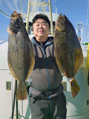 3、0キロのヒラメが最大で竿頭ヒラメ4枚!!明日はヒラメ船、明後日はテンヤ真鯛船とヒラメ船に出船!予約受付中!12月からはヒラメとテンヤ真鯛釣りに2隻で平日も毎日出船します!探見丸smartも使用可能です。スマートフォンをお持ちの方はアプリをダウンロードして、是非お試しください!大さん弘漁丸オリジナルステッカーを乗船記念に限定配布します!初心者も大歓迎!皆様のお越しを心よりお待ちしております!