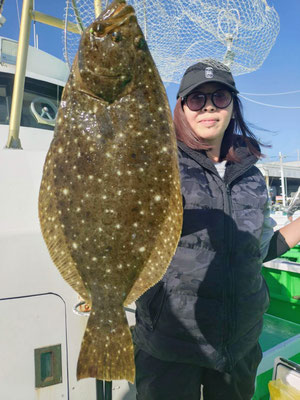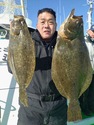 2、8キロのヒラメが最大で竿頭ヒラメ3枚!!12月からはヒラメとテンヤ真鯛釣りに2隻で平日も毎日出船します!探見丸smartも使用可能です。スマートフォンをお持ちの方はアプリをダウンロードして、是非お試しください!大さん弘漁丸オリジナルステッカーを乗船記念に限定配布します!初心者も大歓迎!皆様のお越しを心よりお待ちしております!