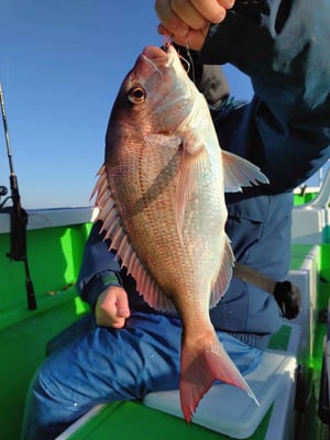 2隻で出船!0、9キロの真鯛が最大で竿頭真鯛5枚でした!!外道多彩でした!明日はヒラメとテンヤ真鯛釣りに2隻で出船します!年明けは3日からまた出船します!探見丸smartも使用可能です。スマートフォンをお持ちの方はアプリをダウンロードして、是非お試しください!大さん弘漁丸オリジナルステッカーを乗船記念に限定配布します!初心者も大歓迎!皆様のお越しを心よりお待ちしております!
