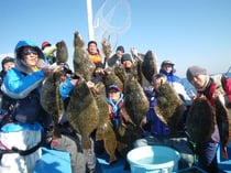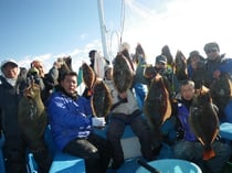4.2キロ、4キロ、3.8キロ、3.6キロ、3.5キロ、3.2キロ、3キロ・・・、1.2キロのヒラメを船中20枚!!ヒラメのサイズは平均2.5キロでした。明日も出船。平日も大チャンスです。平日も毎日、大漁祈願してヒラメ釣りに出船します。ヒラメも人気の釣り物ですのでご予約お早めに。ヒラメ釣りは15名限定で毎日出船。皆様のお越しを心よりお待ちしています。ヒラメ:0~3枚 船中20枚(1.2~4.2キロ)