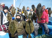 今年、ヒラメ釣りに初出船!!5.0キロのヒラメが最大で船中24枚!!3キロのヒラメ主体に食い良好でした。明日も出船!!今後もチャンスです。ヒラメも人気の釣り物ですのでご予約お早めに。ヒラメ釣りは15名限定で毎日出船。皆様のお越しを心よりお待ちしています。
